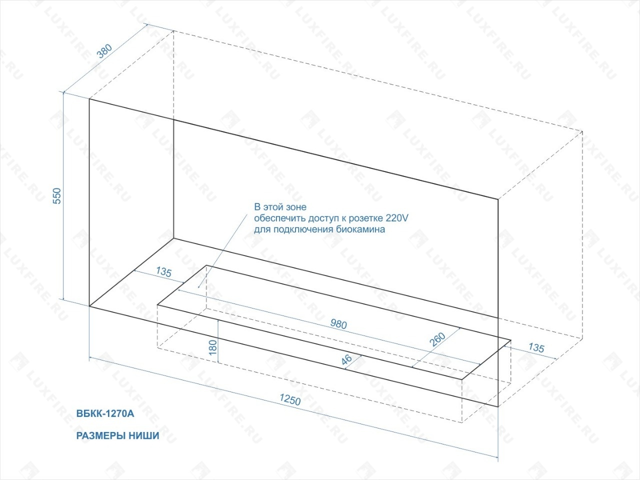 Встроенный автоматический биокамин Lux Fire Кабинет 1270 A