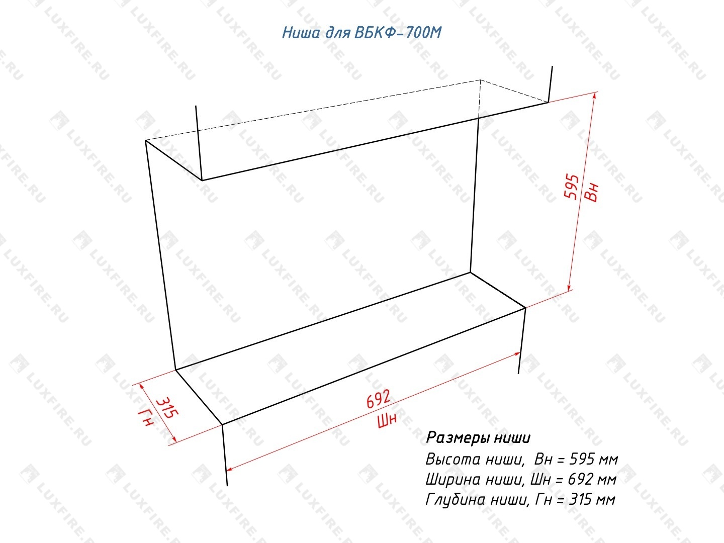 Встроенный биокамин Lux Fire Фронтальный 700 М